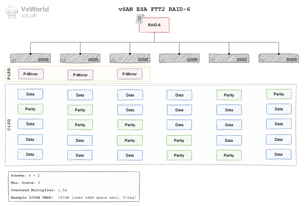 So, why did I bother creating the diagrams you will see later in this post? I was unable to find diagrams for each Storage Policy. VMware vSAN 8.0 U1 Express Storage Architecture Deep Dive provided excellent examples. However, the authors described how it changes for different policies. I’m a visual learner. Having a diagram for each was critical for me to memorise these for the exam.