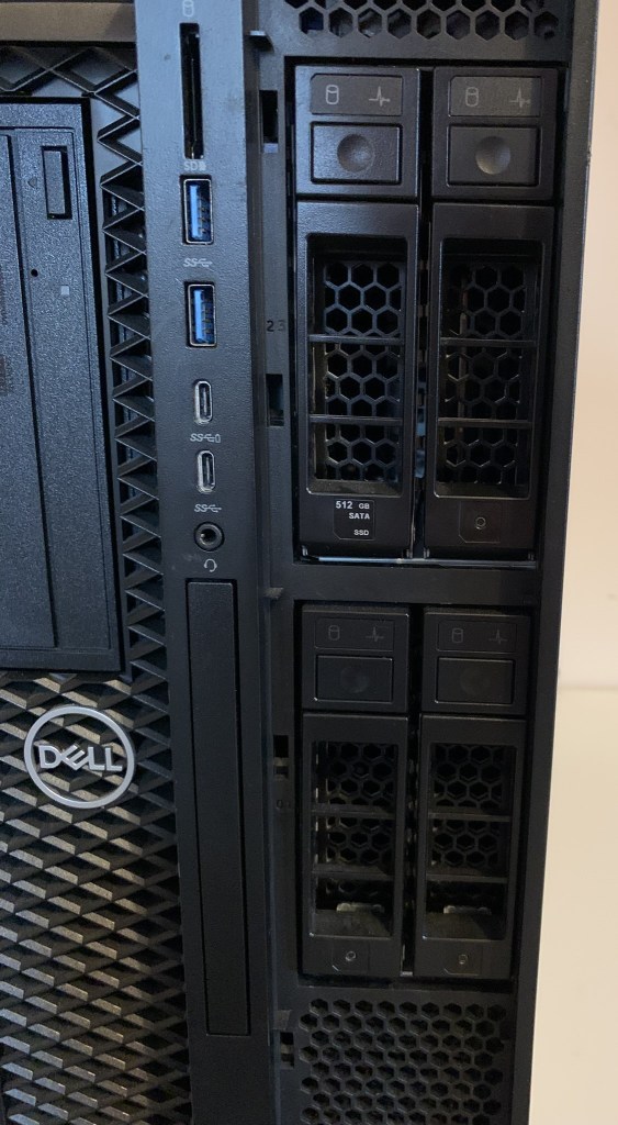 Both the Dell 5280 workstations I have purchased have four hot plug removable drive bays (Flex Bays). Some Dell 5280’s have been built to support two NVMe drives within the hot plug Flex Bays (mine do not).