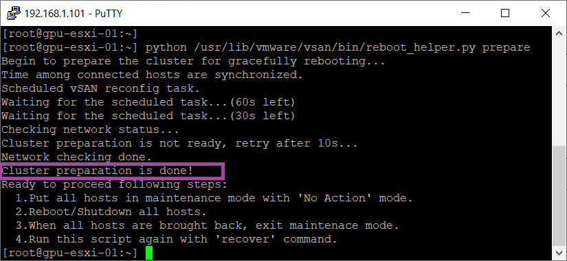 python /usr/lib/vmware/vsan/bin/reboot_helper.py prepare