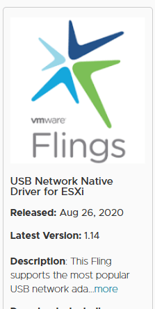 - First, download the USB Network Native Driver for ESXi from the VMware (Broadcom) Flings website.
