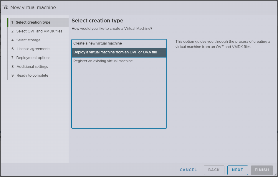 - Select Deploy a virtual machine from an OVF or OVA file
