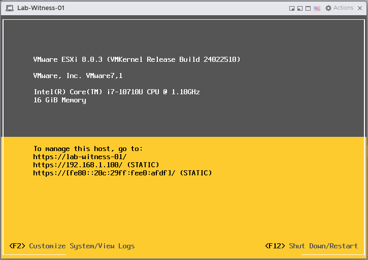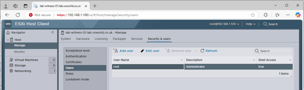 - Browse to the vSAN Witness’s ESXi Host Client