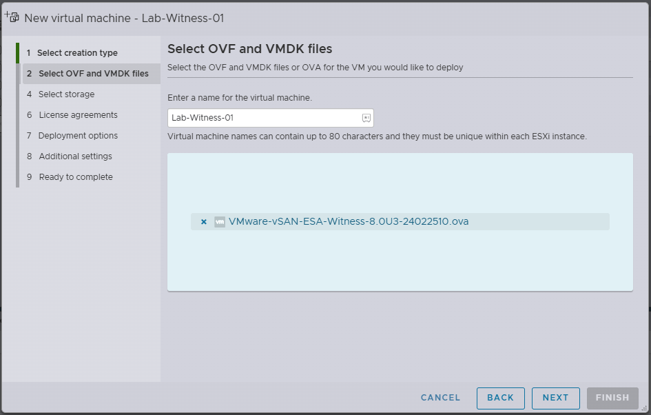 - Enter the VM Name for the vSAN witness appliance