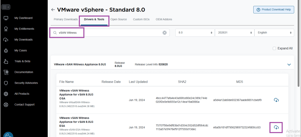 Step 1 – Download vSAN Witness Appliance OVA