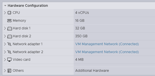 - Management Network: VM Management Network (see note below)