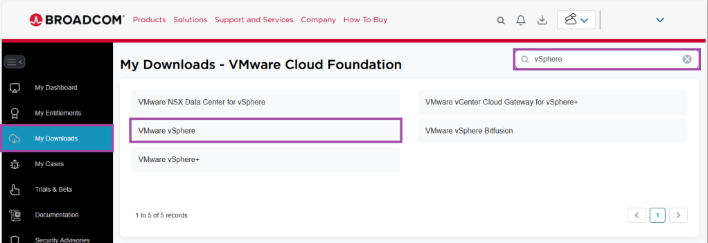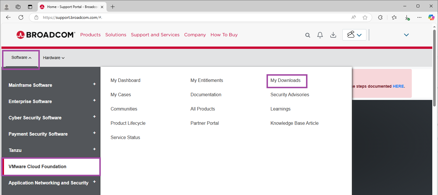 - From Software -> VMware Cloud Foundation, click on My Downloads