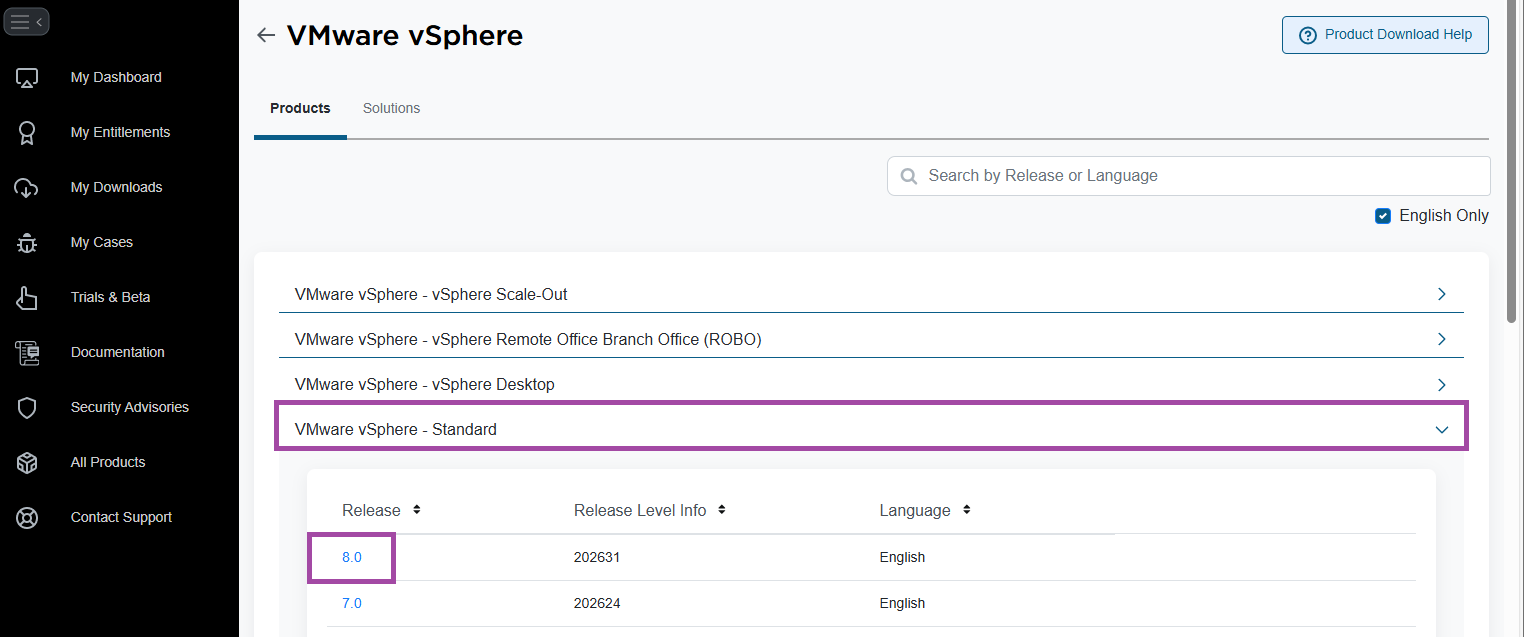 - Click on the appropriate release version. In my example, 8.0