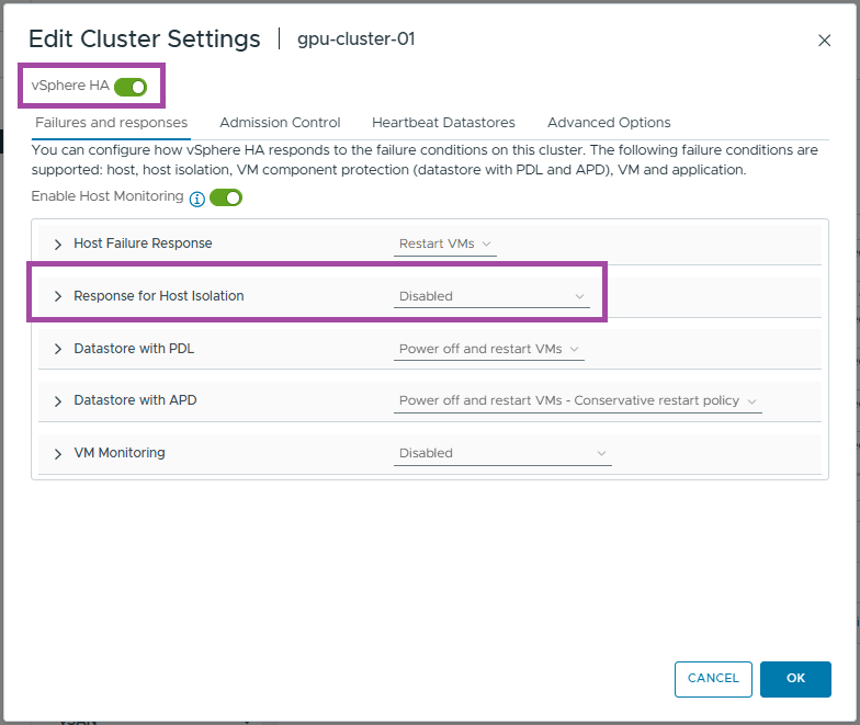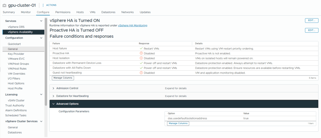 So why are we setting the Isolation Response to disabled? On a vSAN cluster you normally set it to ‘Power off and restart VMs’ – I think the except from Yellow Bricks sums it up nicely.