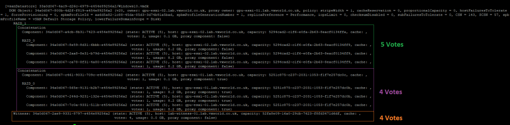 Now, let’s check the votes. As the data site failed first, we expect to see the votes recalculated to account for a potential secondary failure of the witness.