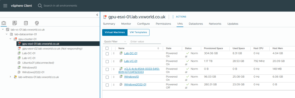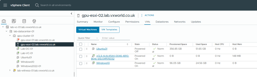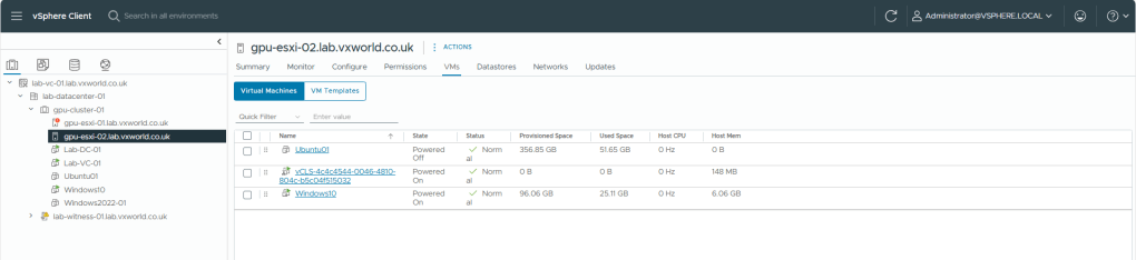 Finally, I will power on the witness and ESXi-02 to confirm everything comes back as expected.