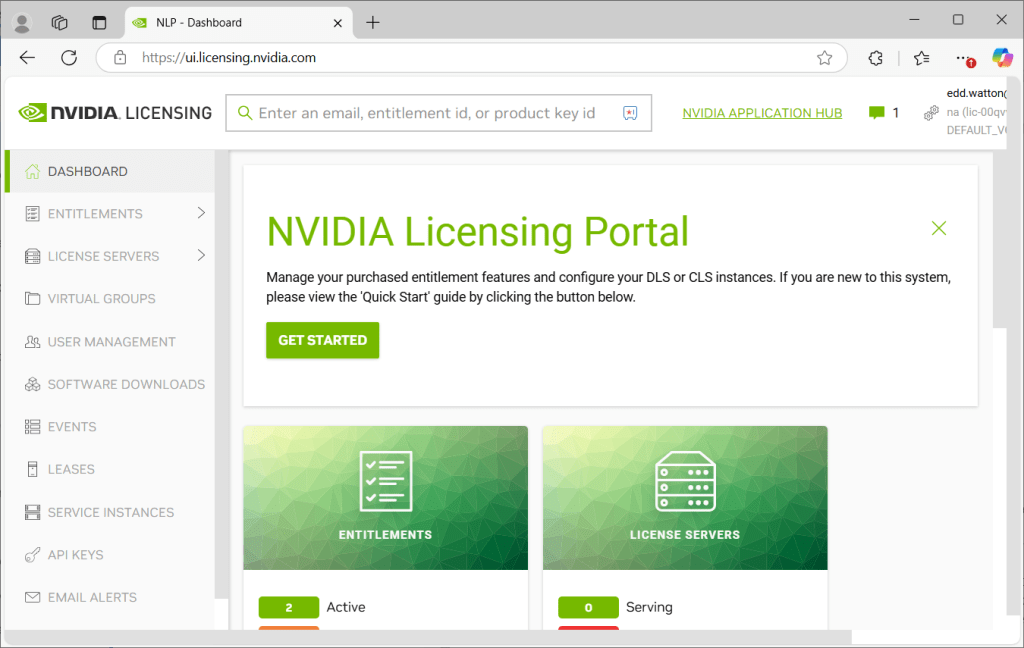 - Once setup, you should have access to the NVIDIA Licencing Portal (https://ui.licensing.nvidia.com/)