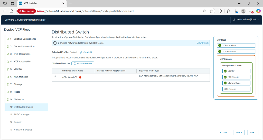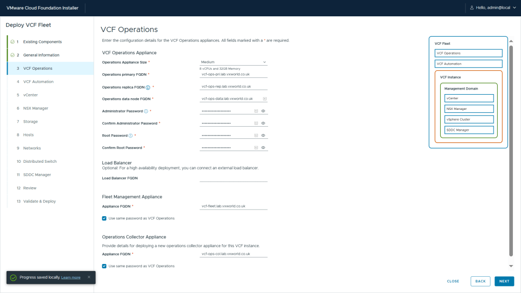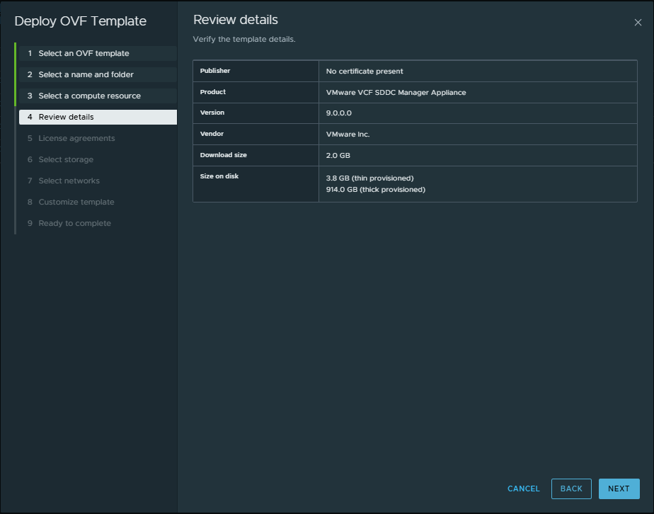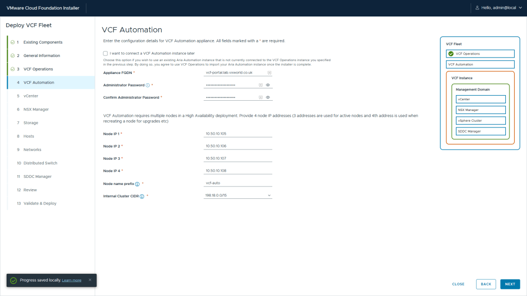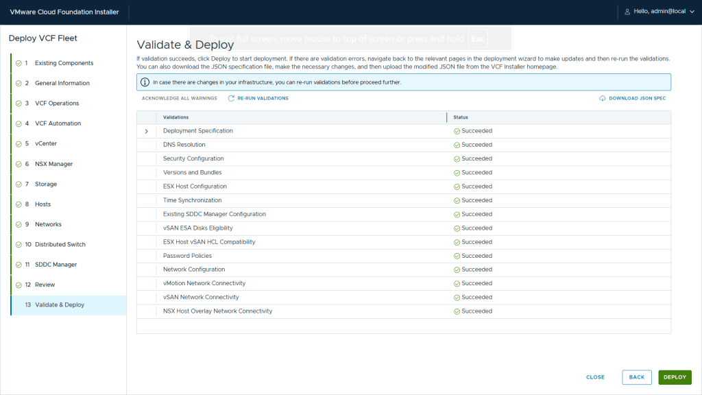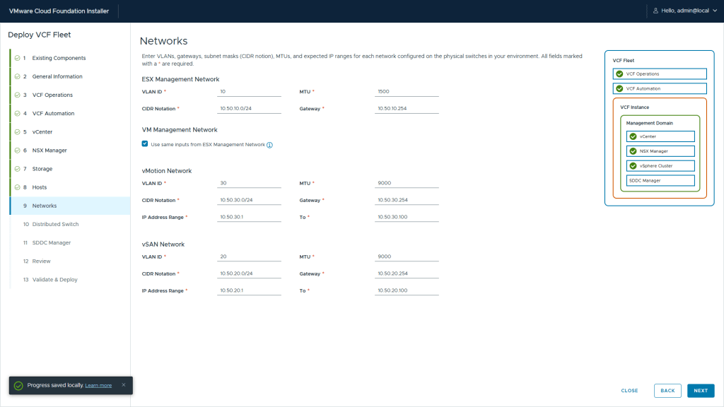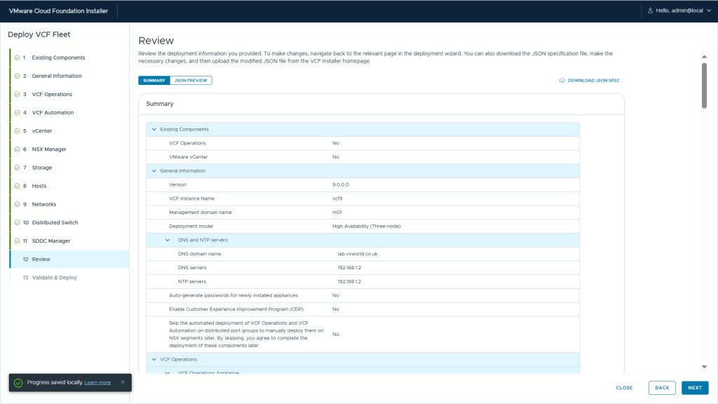 The VCF 9 Installer is a massive improvement over its predecessor. Compared to the old Excel-based Cloud Builder method, the new approach is more robust, polished, and streamlined. It comes with: