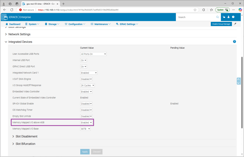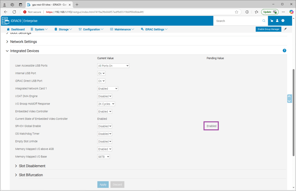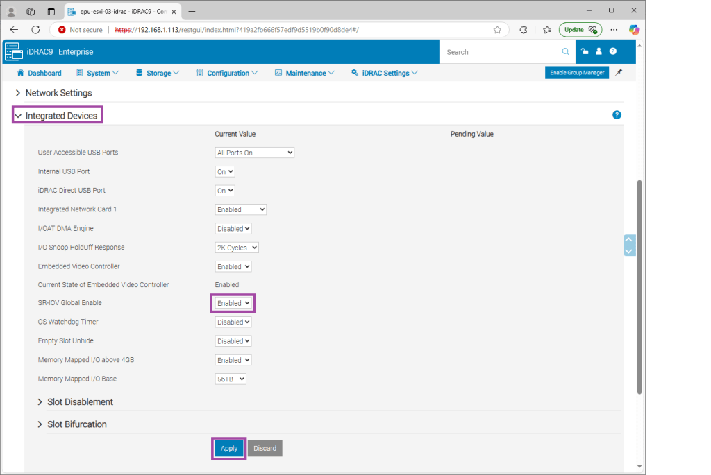 - Under Integrated Devices, enable SR-IOV Global Enable