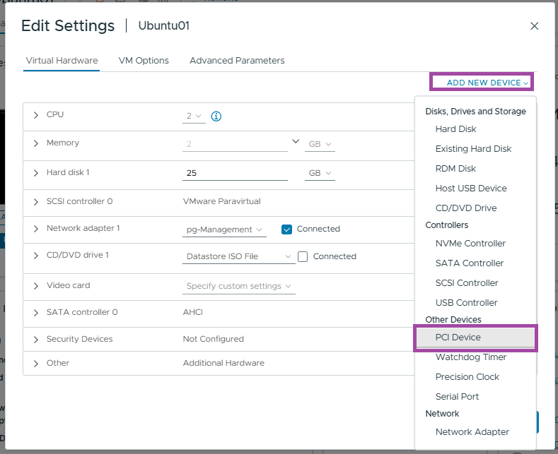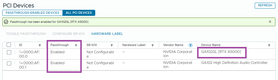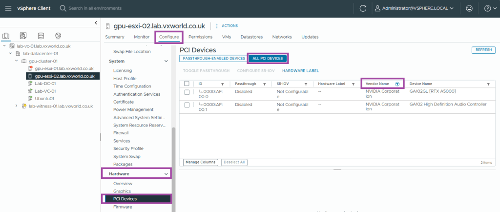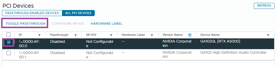 - Browse to Configure -> Hardware -> PCI Devices -> All PCI Devices