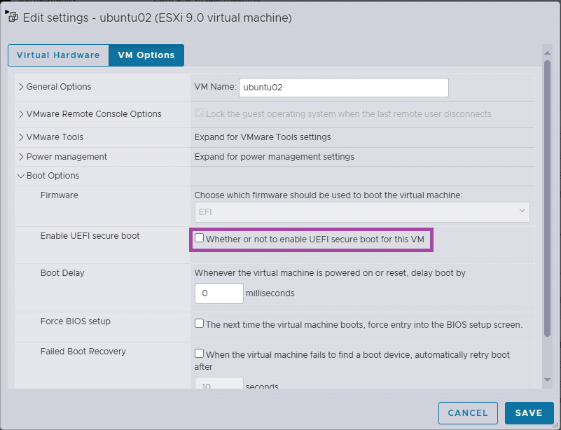 (Refer to the Create a VM section above) - 64-bit MMIO is enabled