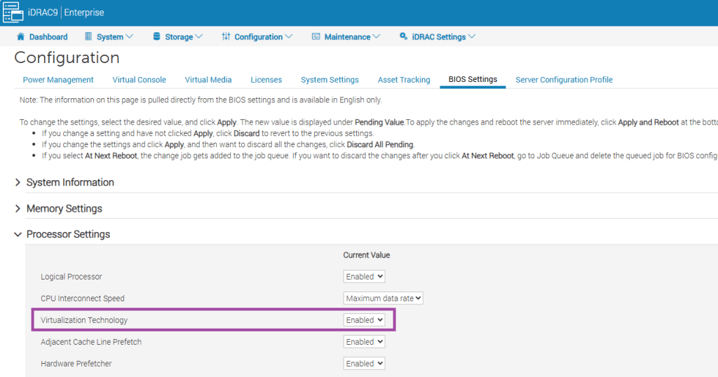Here’s how I configured the BIOS on my Dell PowerEdge R740: